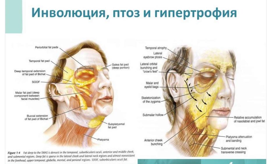 С возрастом, если над платизмой не работать, под подбородком провисает кожа, шея становится дряблой, уголки губ опускаются и тянут за собой щеки (птоз).